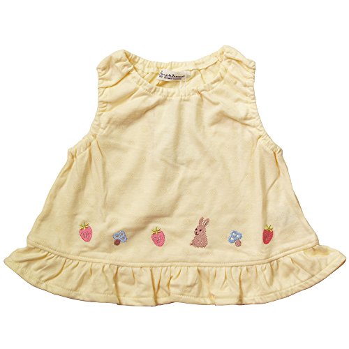 《初夏盛夏対応》(日本製) Pample Mousse(パンプルムース) タック天竺ジャガードいちご&うさぎ&キノコ刺繍タンクトップ 90cm/CR NO.DP-72256