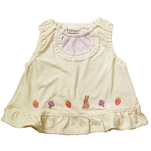 《初夏盛夏対応》(日本製) Pample Mousse(パンプルムース) タック天竺ジャガードいちご&うさぎ&キノコ刺繍タンクトップ 95cm /IV NO.DP-72256