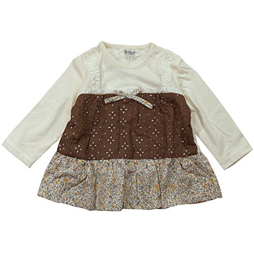 《H29年春物》(日本製) Pample Mousse(パンプルムース) クリスタルローンプリント+ドビーSZ天竺切替花柄リボン付オーバーブラウス 90cm/IV NO.DP-71214