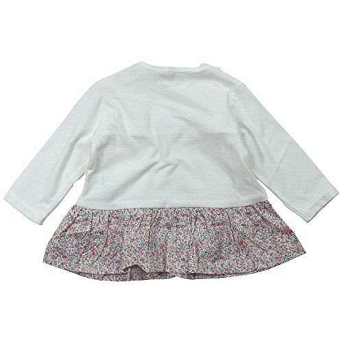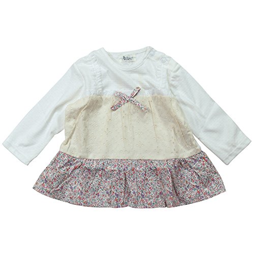 《H29年春物》(日本製) Pample Mousse(パンプルムース) クリスタルローンプリント+ドビーSZ天竺切替花柄リボン付オーバーブラウス 90cm/OW NO.DP-71214