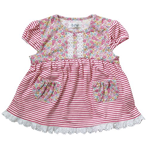 《初夏盛夏対応》(日本製) Pample Mousse(パンプルムース) 天竺小花柄&ボーダーフレンチ袖オーバーブラウス 90cm /PK NO.DP-72207