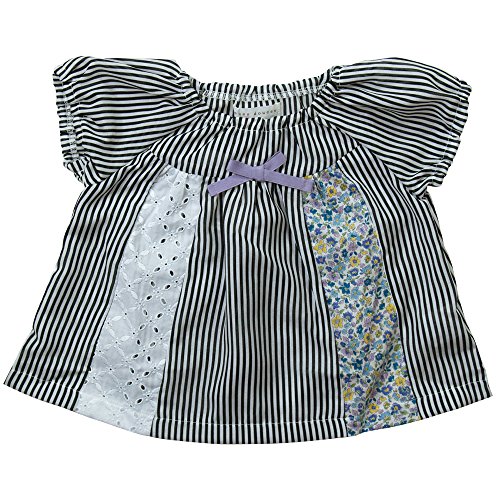 《初夏盛夏対応》(日本製) Pample Mousse(パンプルムース) スパンローンストライプとレースと花プリントのオーバーブラウス 95cm /BK NO.DP-72804