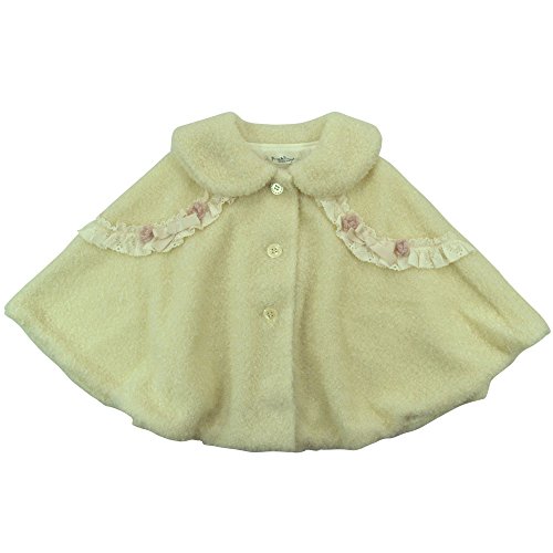 【秋冬物】(日本製) Pample Mousse(パンプルムース) シープボア裏天竺レースリボン花付マント FREE/IV NO.DP-54108