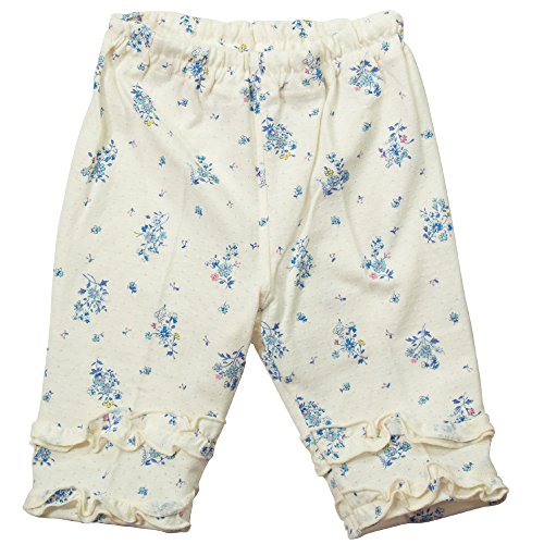《初夏盛夏対応》(日本製) Pample Mousse(パンプルムース) 針抜き天竺花柄2段フリル五分丈パンツ 80cm /IV NO.DP-72354