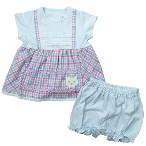 《初夏盛夏対応》(日本製) Pample Mousse(パンプルムース) 先染め格子&針抜き天竺ネコAPミルキースーツ 90cm /SA NO.DP-72452