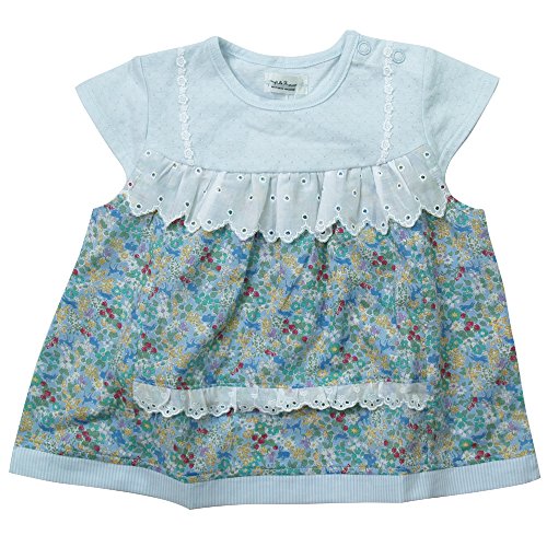 《初夏盛夏対応》(日本製) Pample Mousse(パンプルムース) 針抜き天竺&布帛ローン小花柄フレンチ袖オーバーブラウス 80cm /SA NO.DP-72209