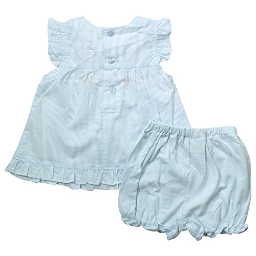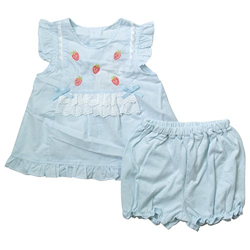 《初夏盛夏対応》(日本製) Pample Mousse(パンプルムース) 先染80ローンストライプいちご刺繍フリル袖ミルキースーツ 80cm /SA NO.DP-72456