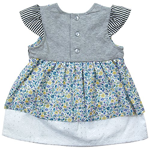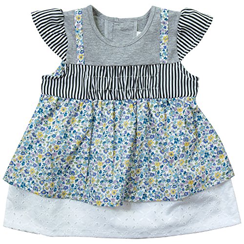 《初夏盛夏対応》(日本製) Pample Mousse(パンプルムース) 60ローンレースプリントとストライプの切り替えワンピース 95cm /BL NO.DP-72800