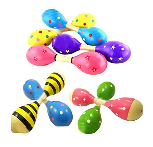 2のセットかわいいベビーおもちゃサウンドおもちゃWooden Baby Rattles (ランダムパターン)