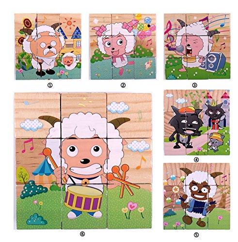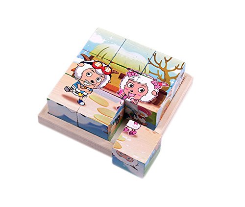 簡単木製Building Blocks乳児と幼児のため、9 pcs Pleasant Goat