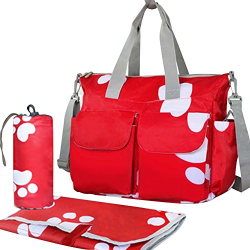 赤、防水大容量の赤ちゃんボトルトートバッグ/シングルショルダーバッグ(フットプリント)
