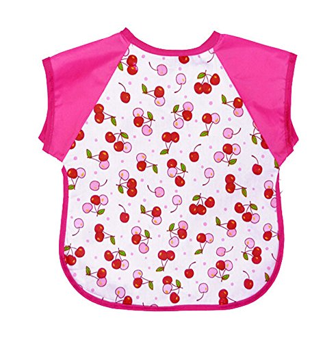 夏のコットン防水半袖ビブベビーフィードスモックチェリー、1-3歳
