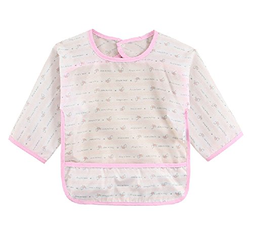 防水シルクスリーブベビービブベビーフィードスモックピンク、0-2歳