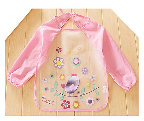 2ピースEVA透明防水スリーブビブベビーフィードスモックC、0~2年