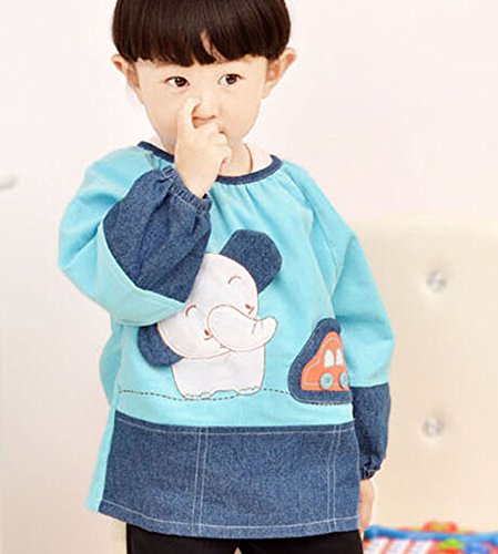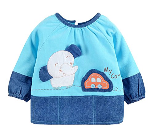 かわいいコーデュロイ防水スリーブビブベビーフィードビブスブルー
