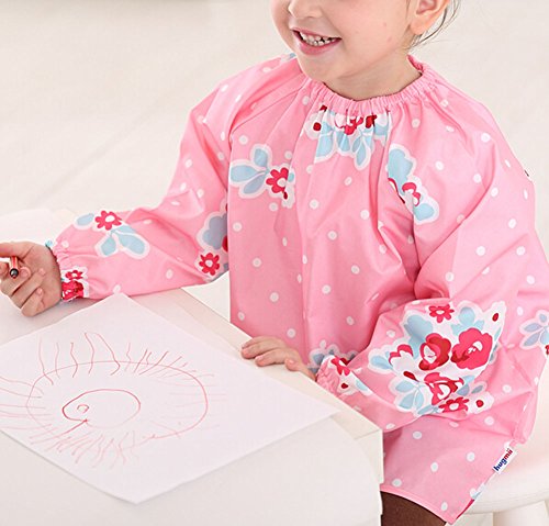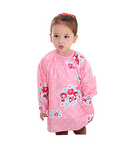 防水通気性のベビービブのオーバークロットペインティングスモックエプロンピンク