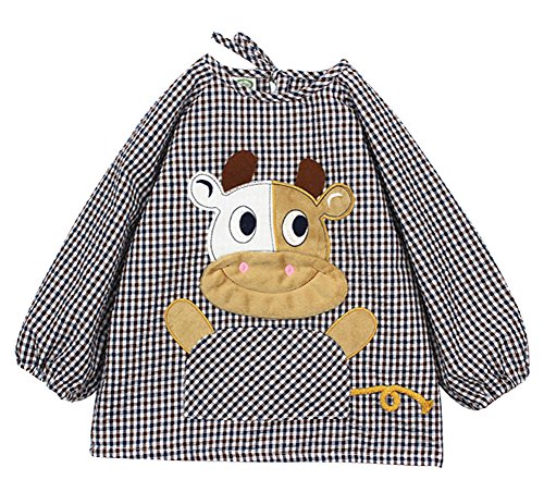 かわいい漫画の牛の防水スリーブビブベビースモックベイビービブブルー、2~3年