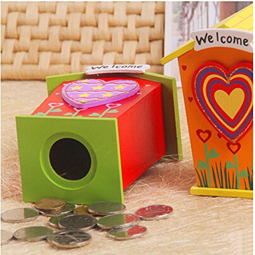 3のセット[カラフルハート]木製Coin Bank for Kids ( 2.72.34.5?" )ランダムスタイル