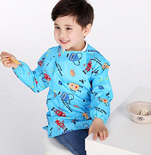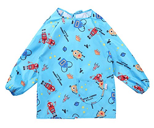 クリエイティブBLUEロボット防水スリーブビブ子供絵画スモック(90-110CMの高さ)