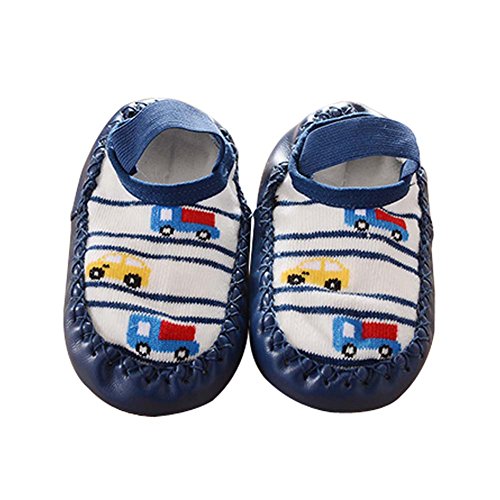 ダークブルー色のトラックパターンアンチスリップ新生児ソックス