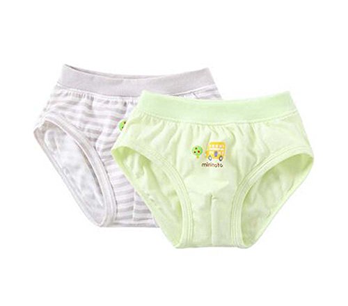 2個の通気性ソフト赤ちゃん下着パンティー、灰色の緑色、2歳から3歳