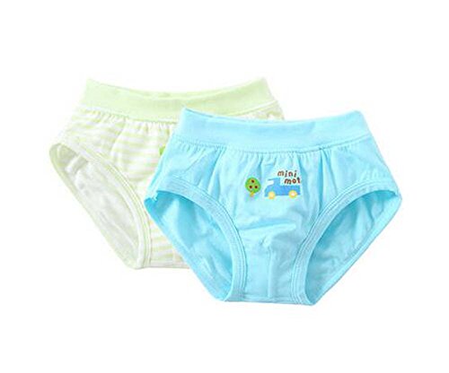 2個の通気性ソフト赤ちゃん下着パンティー、青緑、2歳から3歳