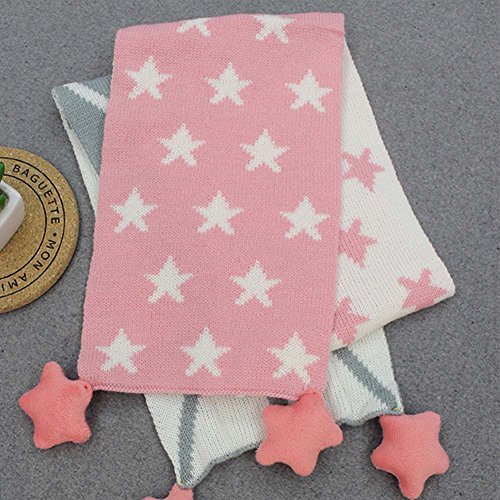 ピンクとグレーの秋冬のベビースカーフコットンスターウォームスカーフマフラー