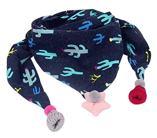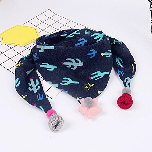 冬より厚い子供暖かい三角形のスカーフ、ネイビーブルーとサボテン