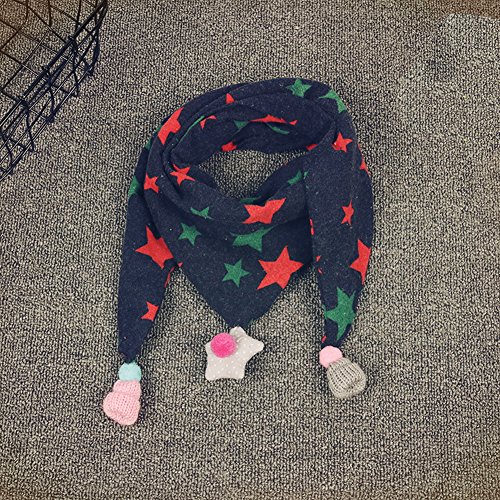 冬の厚い子供暖かい三角形のスカーフ、ネイビーブルーとビッグスターズ