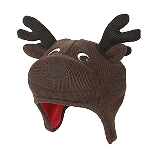 暖かい帽子ニット帽子プラスベルベットの耳保護ダークコーヒー色のトナカイ