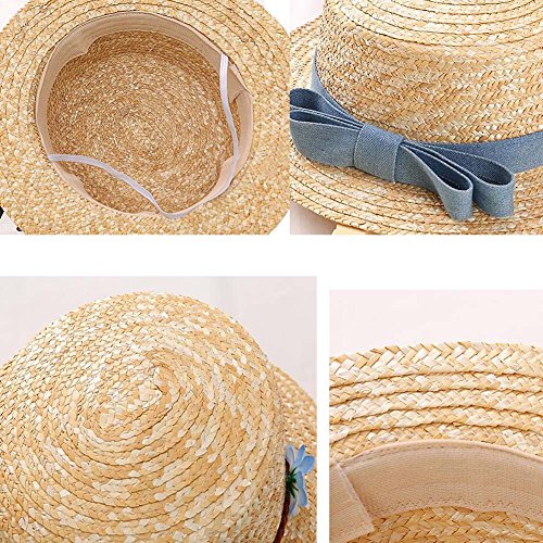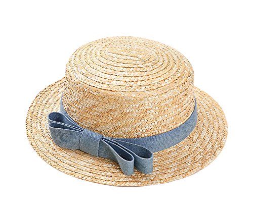 ベビーガールハットサマービーチサンハット麦わら帽子3-8歳、カウボーイブルーの弓