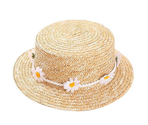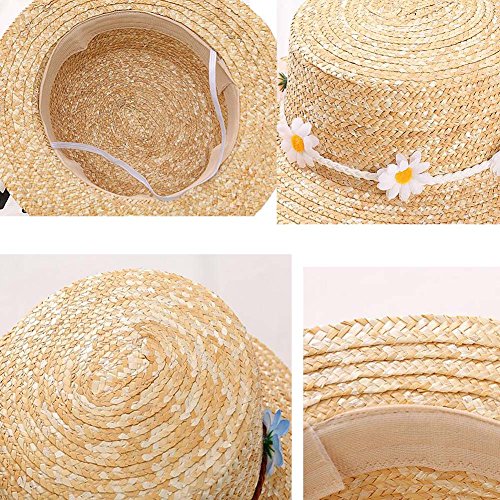ベビーガールハットサマービーチサンハット麦わら帽子3-8歳、白い花