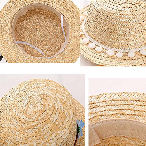 ベビーガールハットサマービーチサンハット麦わら帽子3-8歳、白