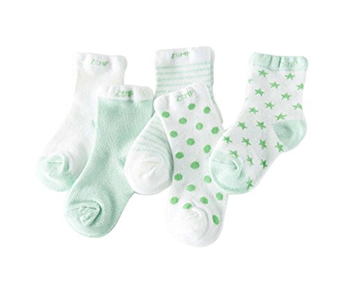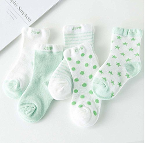 5組夏の薄いセクションメッシュコットングリーンベビーソックス