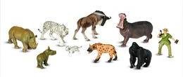 Fill the Jungle Hospital (sold separately) with our Jungle Medic Figure Set. The realistically detailed, exotic wildlife figures include a jungle doctor, white tiger and cub, hippopotamus, gorilla, hyena, black rhinoceros and calf, and a gnu. Figure sizes vary, average height: 2 ½ inches.