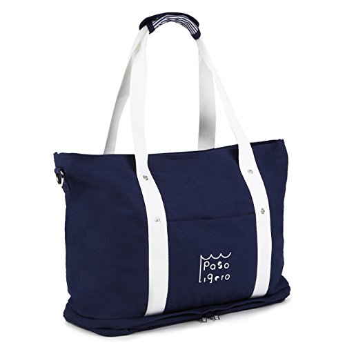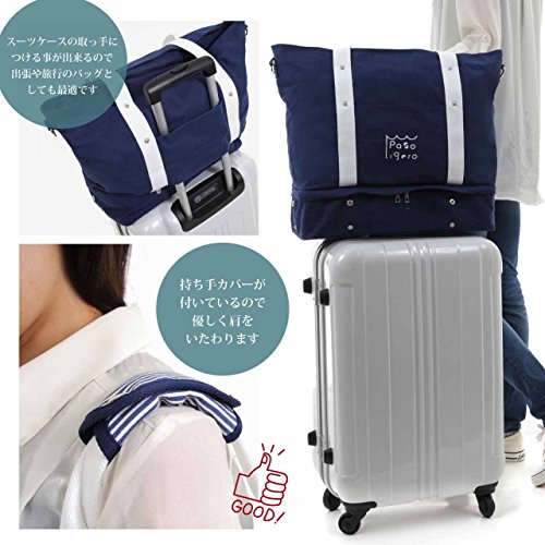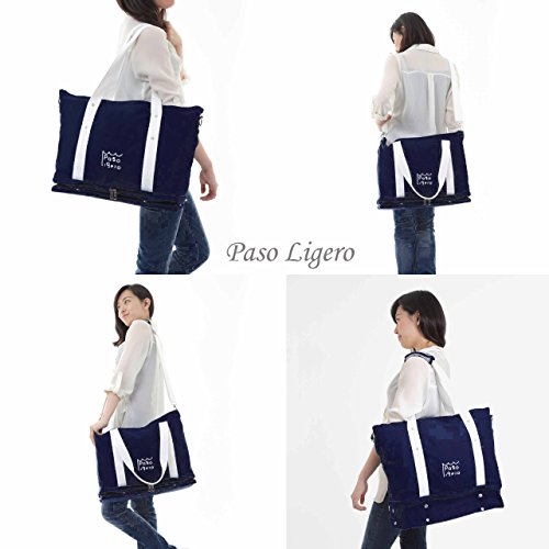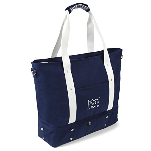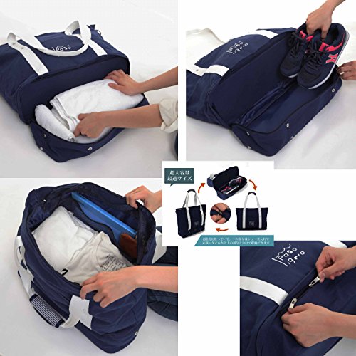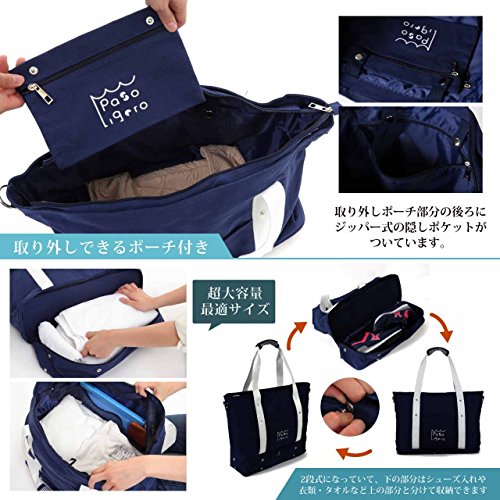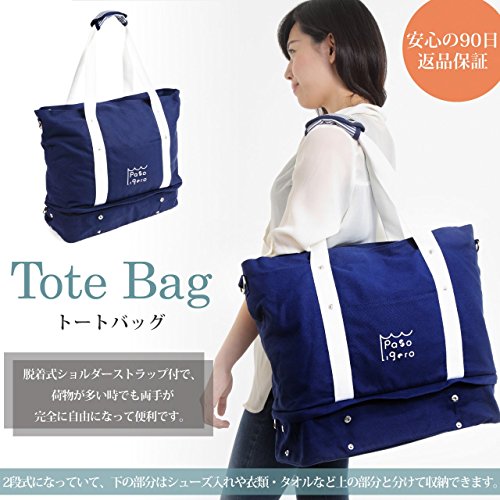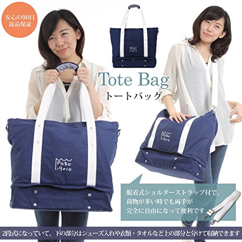 [Paso Ligero] トートバッグ 斜めがけ ショルダー マザーズバッグ キャリーバッグ 旅行 バッグ ジムバッグ メンズ レディース 大容量 2層式 弁当・靴収納 A4サイズ キャンバス ポーチ付き 2WAY 軽量 人気 多機能 (XL size, Navy ネイビー)