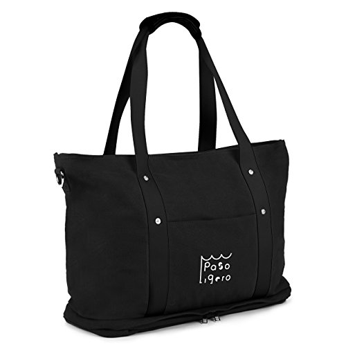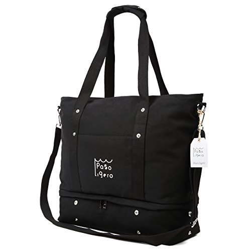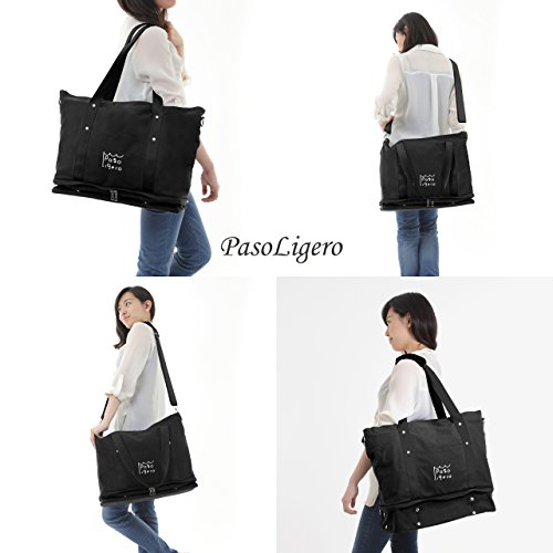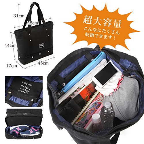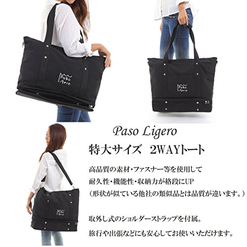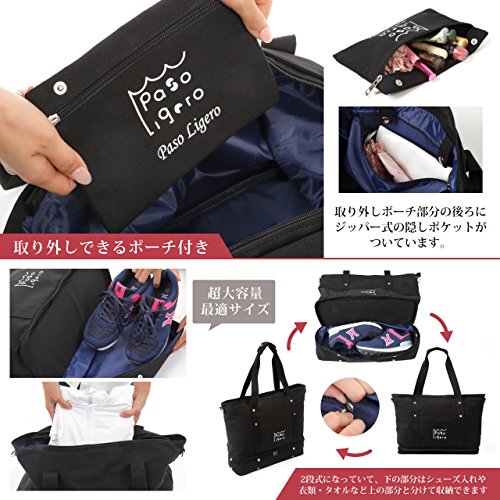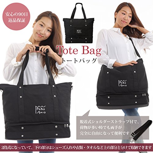 [PasoLigero] トートバッグ マザーズバッグ キャリーバッグ ショルダーバッグ ジムバッグ メンズ レディース 大容量 2層式 弁当・靴収納 A4サイズ キャンバス ポーチ付き 2WAY 人気 多機能 (XL size, Black ブラック)