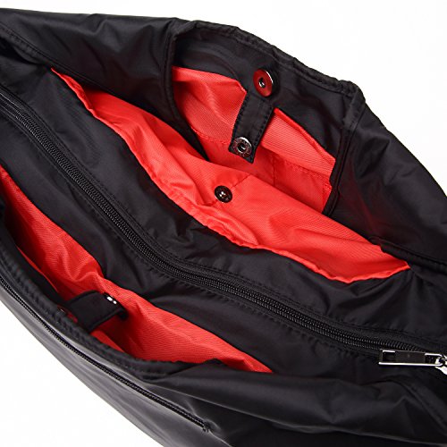 超軽量 2WAY 防水 A4 ショルダーバッグ トート ビジネスバッグ レディース メンズ 斜めがけ 通勤 通学 ポケット全11個 多機能 大容量 マザーズバッグ ナイロン (L, Black & Red)