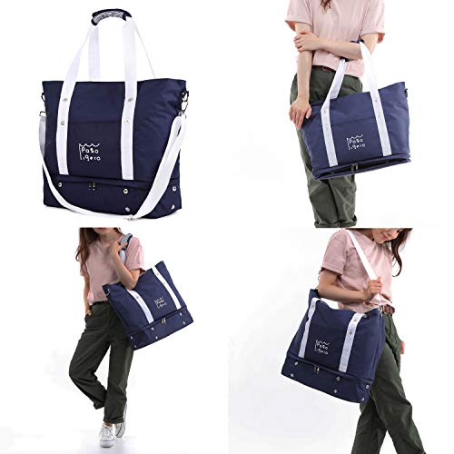 [PasoLigero] トートバッグ マザーズバッグ キャリーバッグ ショルダーバッグ ジムバッグ メンズ レディース 大容量 2層式 弁当・靴収納 A4サイズ ポーチ付き 2WAY 人気 多機能 (Navy ネイビー)