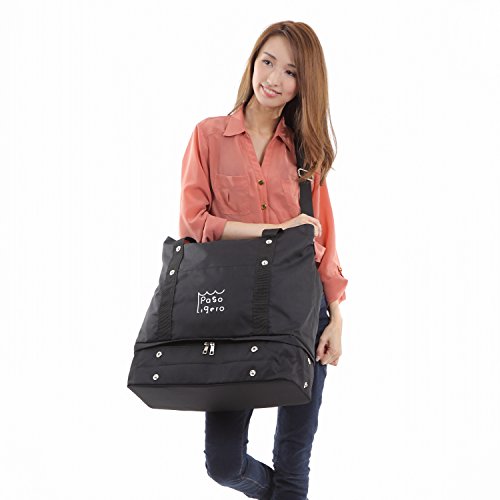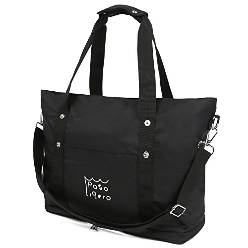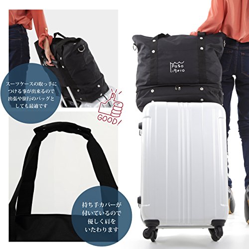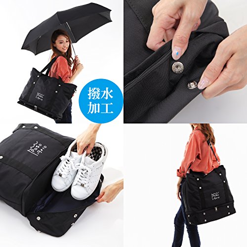 [PasoLigero] トートバッグ マザーズバッグ キャリーバッグ ショルダーバッグ ジムバッグ メンズ レディース 大容量 2層式 弁当・靴収納 A4サイズ ポーチ付き 2WAY 人気 多機能 (Black ブラック)