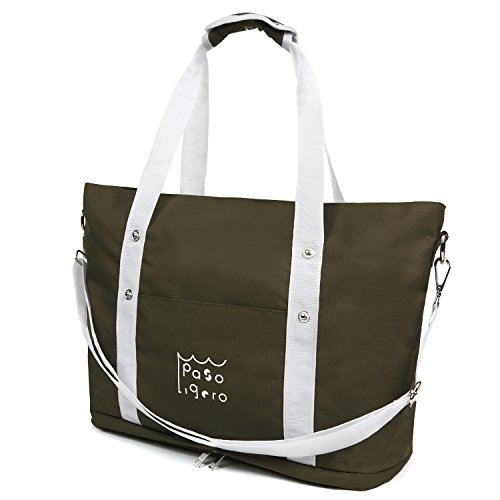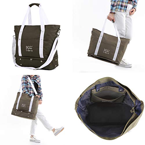 [PasoLigero] トートバッグ マザーズバッグ キャリーバッグ ショルダーバッグ ジムバッグ メンズ レディース 大容量 2層式 弁当・靴収納 A4サイズ ポーチ付き 2WAY 人気 多機能 (グリーン&ホワイト)