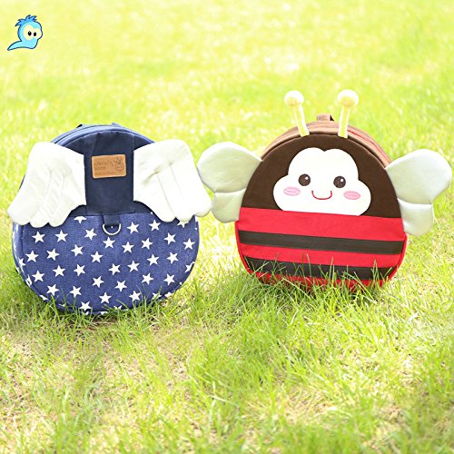 高品質 かわいい 小悪魔 ミツバチ 天使 羽付 リュック バック 丸型 リュックサック 迷子 防止 ハーネス付 幼児 子供用 (大型, ネイビー 天使)