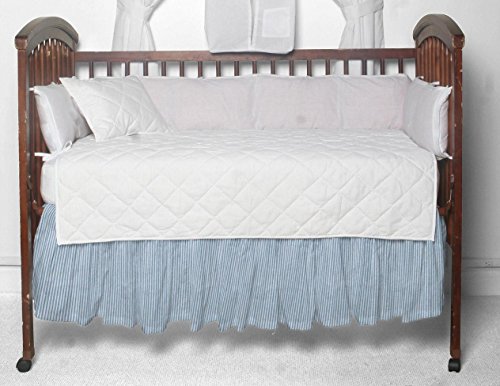 パッチMagicブルーとホワイトTickingファブリックダスト用フリル付きCrib