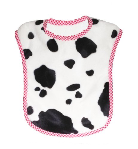 - Patricia Ann Designs Reversible Bib, Cow with Vanilla Fleece and Red Check Trim