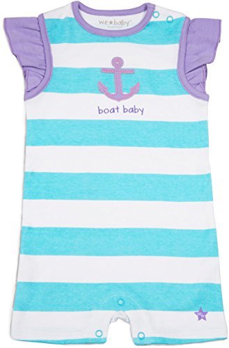 Weベビー6 – 12月ティールストライプアンカーボート赤ちゃん女の子ロンパース