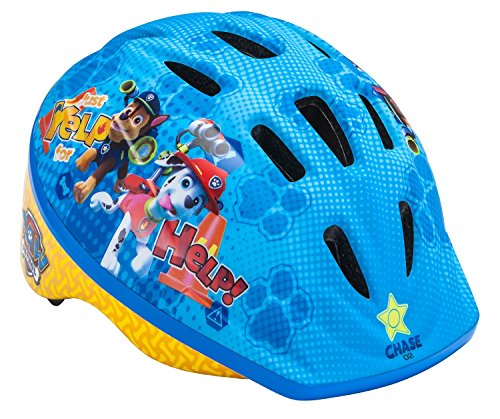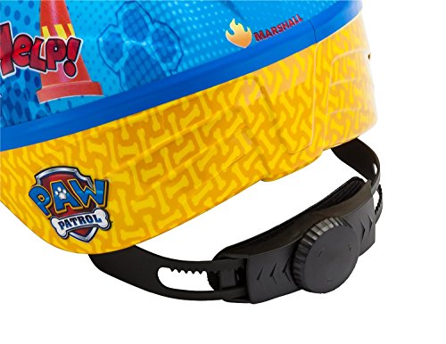 The Paw Patrol toddler helmet fits kids from 3 to 5 years of age, the dial a fit system offers 100 percent adjustability for larger or smaller heads. The top and front vents to keep little heads cool and comfortable while the lower molded shell for protection from drops and just every day use that kids do.