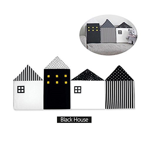 PAWACAコットンベビーベッドバンパー、北欧スタイル小さな家形状ベッドフェンス、Prevents赤ちゃんからGetting Stuck in Cribスラット、ベッドCradleプロテクター寝具set-4パック ブラック 7025779911367
