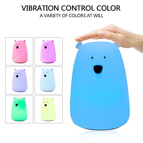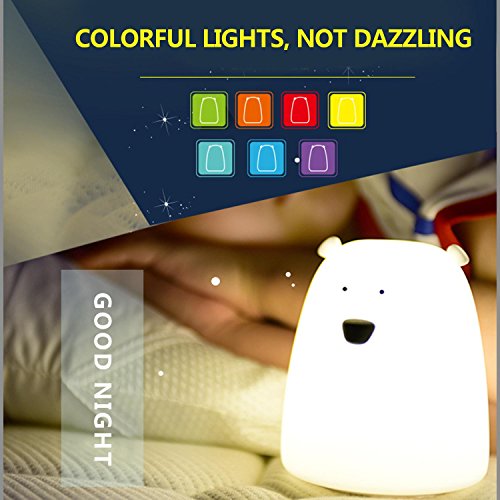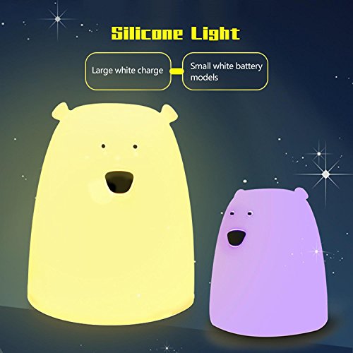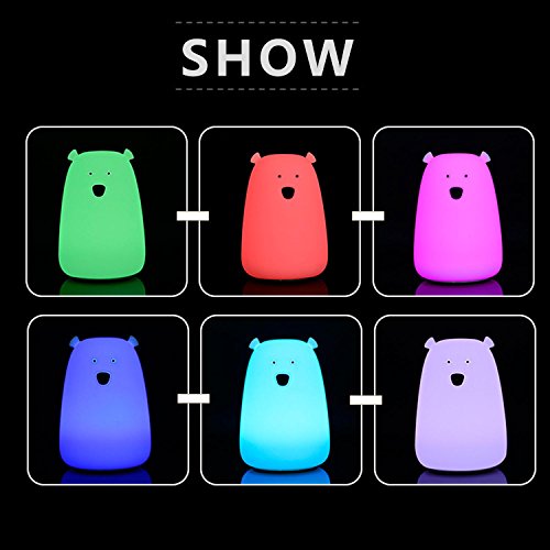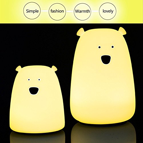 PAWACA子供キッズナイトライト、LED Little Bear Silicon Toy Sensitiveタップコントロール夜間用ベビー3照明モード/ 7-colors / USB充電式, Great for Children部屋クリスマスギフト B077TWBHZR