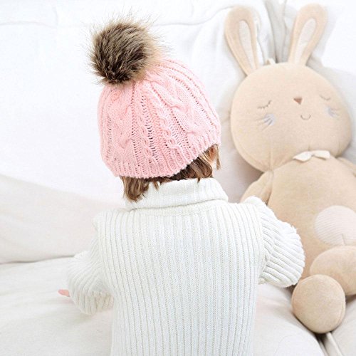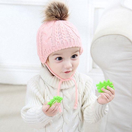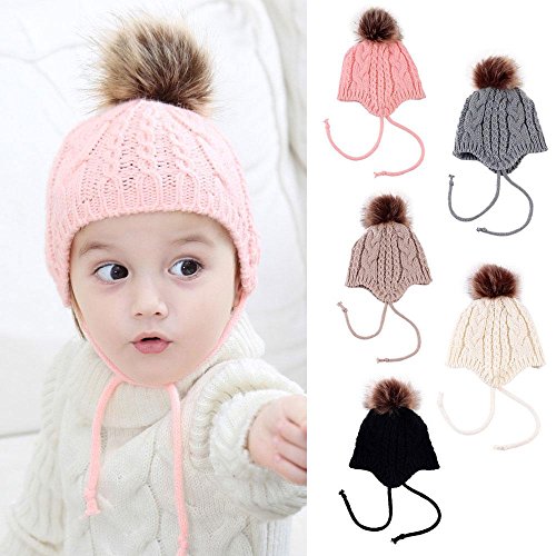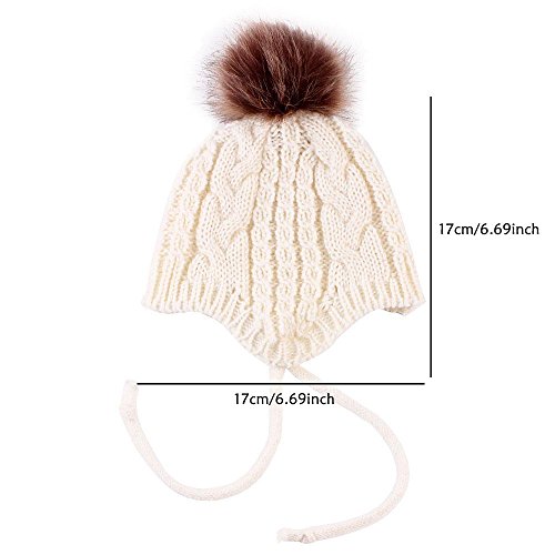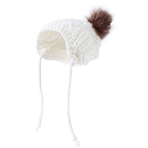 Pawaca ニット帽子 キッズ ニット帽 ボンボン 子供帽子 帽子 耳あて付 ベビー 子供 児童 赤ちゃん 出産祝い 新生児 可愛い 女の子 秋 冬 (ホワイト)