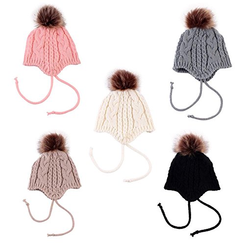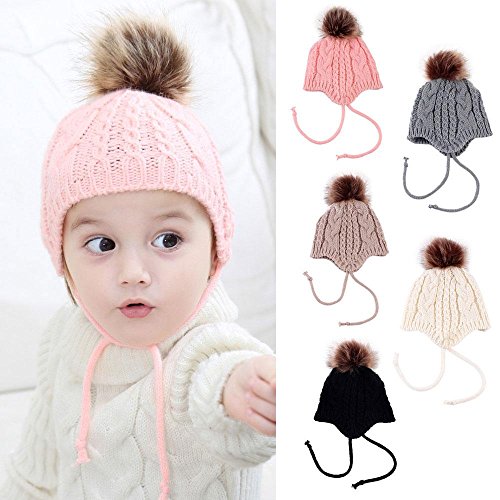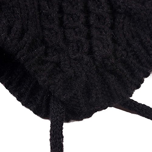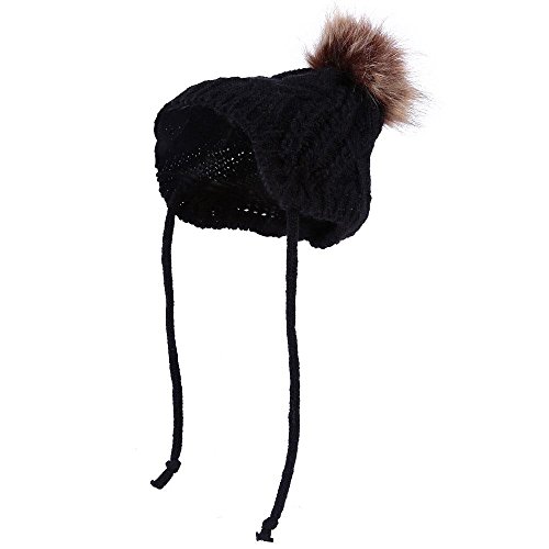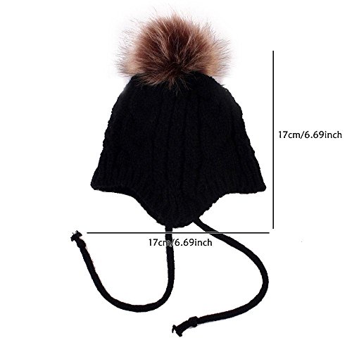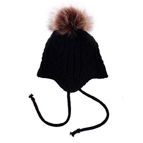Pawaca ニット帽子 キッズ ニット帽 ボンボン 子供帽子 帽子 耳あて付 ベビー 子供 児童 赤ちゃん 出産祝い 新生児 可愛い 女の子 秋 冬 (ブラック)